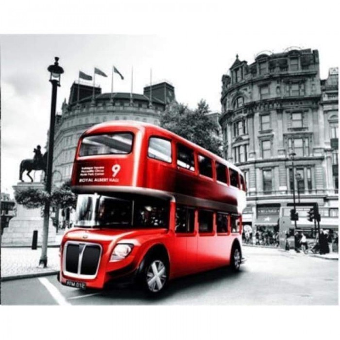 Volledige boor - 5D DIY Diamond Painting Kits grijs landschap rode bus
