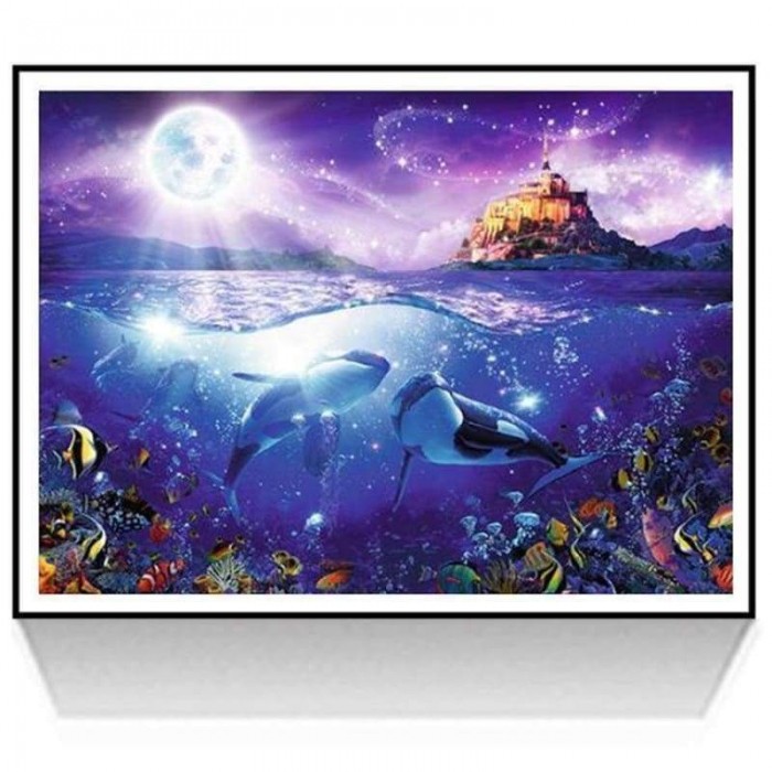 Volledige boor - 5D DIY Diamond Painting Kits Fantasy Moonlight Mystieke dolfijn