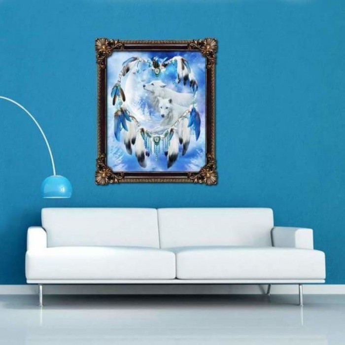 Volledige boor - 5D DIY Diamond Painting Kits Liefdevolle White Wolf Dream Catcher