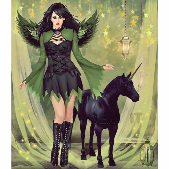 Zwarte Engel met Zwarte Eenhoorn Volledige Boor Diamant Schilderij -