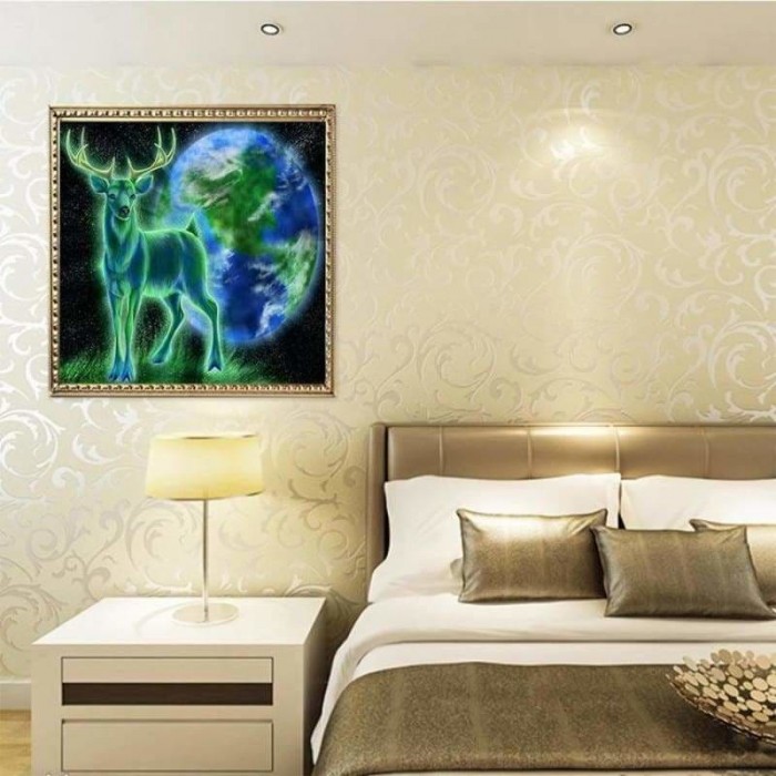 Volledige boor - 5D DIY Diamond Painting Kits Fantasy Green and Blue Deer Earth
