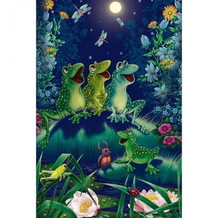 Volledige boor - 5D DIY Diamond Painting Kits Cartoon Happy Frogs in the Grass