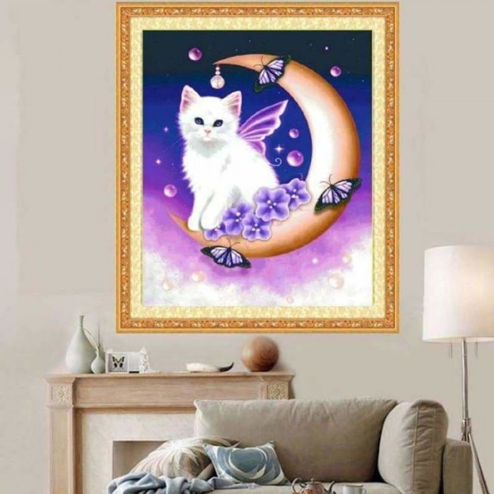Volledige boor - 5D Diamond Painting Kits Cartoon Cute Cat on the Moon