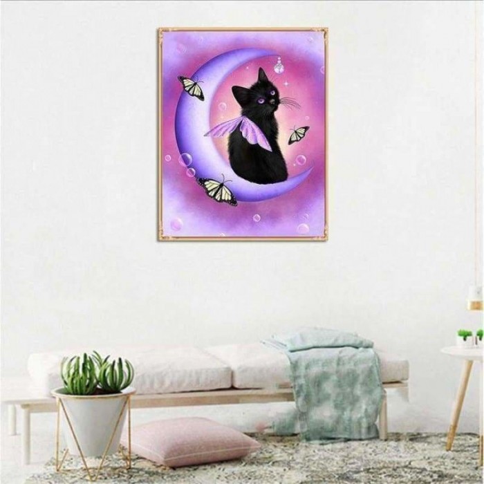 Volledige boor - 5D DIY Diamond Painting Kits Cartoon Cat Elf On the Moon