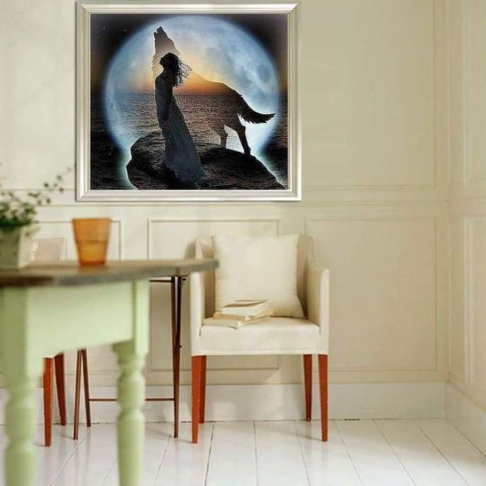 Volledige boor - 5D DIY Diamond Painting Kits Dream Moon Wolf and Beauty