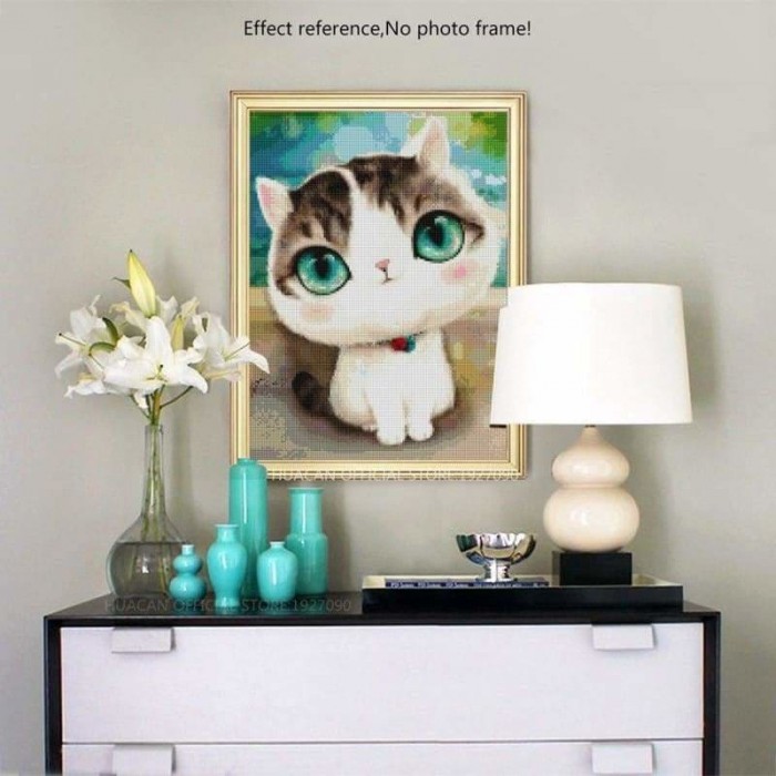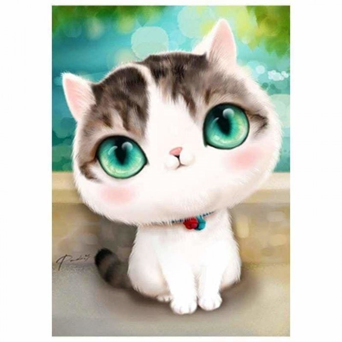 Volledige boor - 5D DIY Diamond Painting Kits Cartoon Cute Big Eyes Cat
