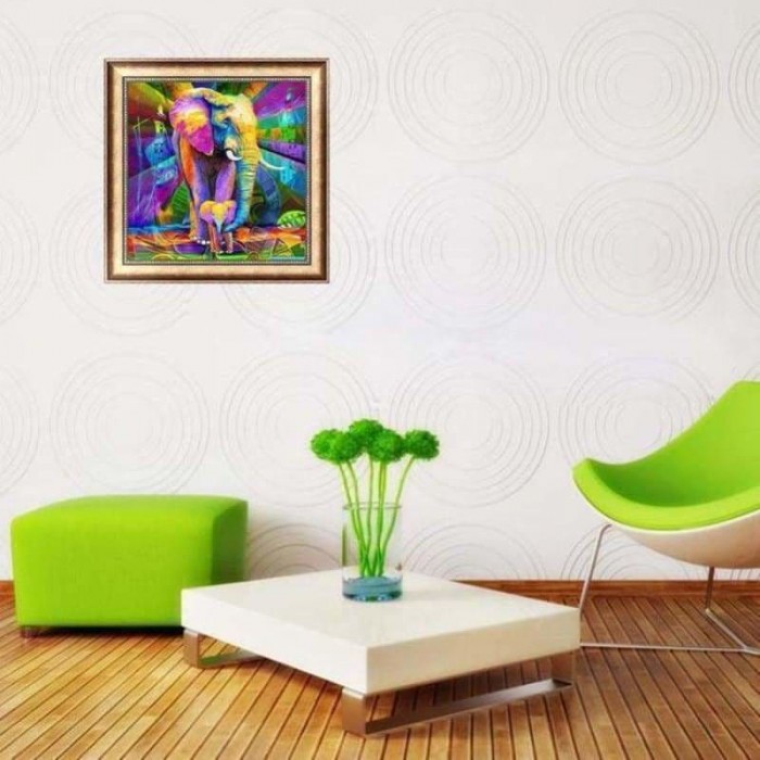 Volledige boor - 5D DIY Diamond Painting Kits Artistieke kleurrijke olifantenfamilie