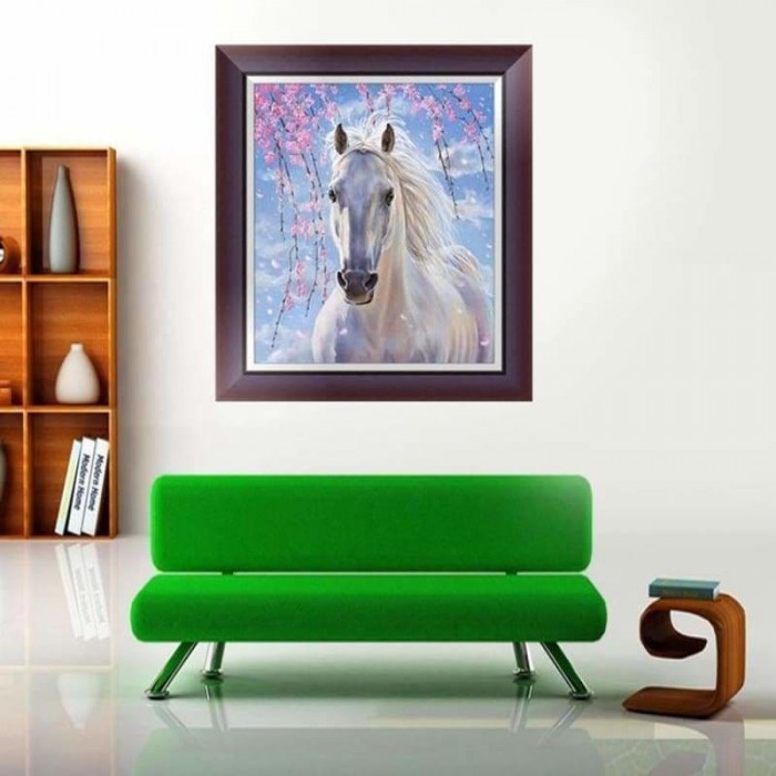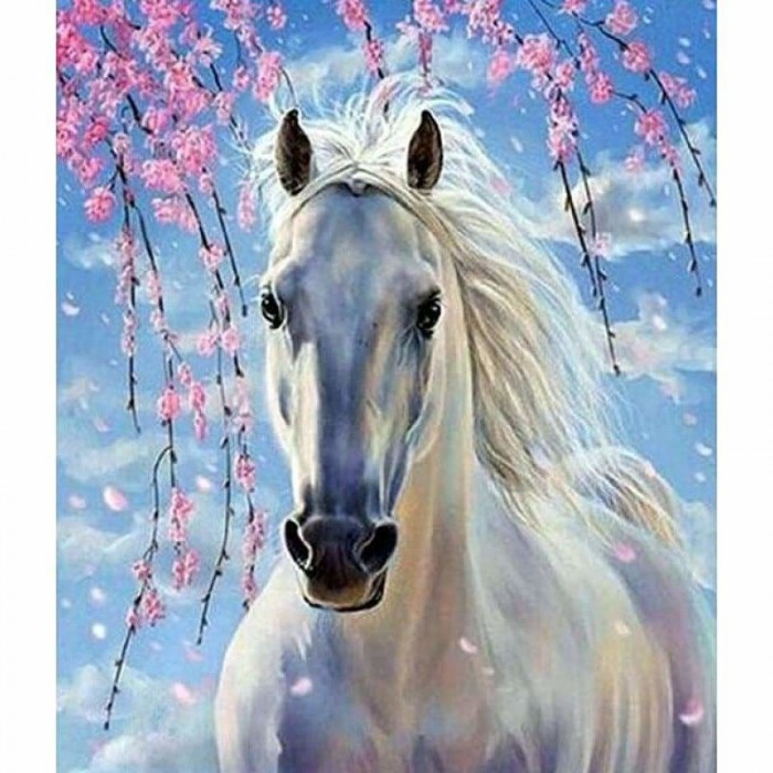 Wit paard tussen de bloesem