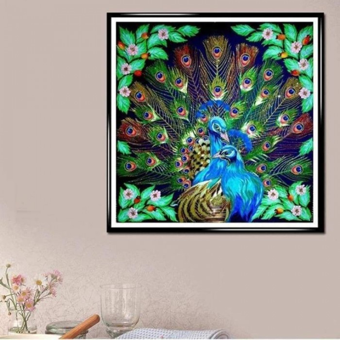 Volledige boor - 5D DIY Diamond Painting Kits Cartoon Beautiful Peacock Couple