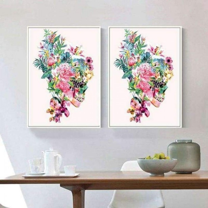 Volledige boor - 5D DIY Diamond Painting Kits Kleurrijke bloemen Schedel