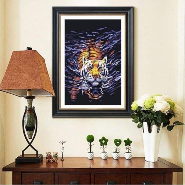 Volledige boor - 5D Diamond Painting Kits Animal Swimming in the Lake Tiger