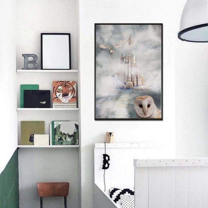 Volledige boor - 5D DIY Diamond Painting Kits Romantisch wit kasteel en uil in de mist