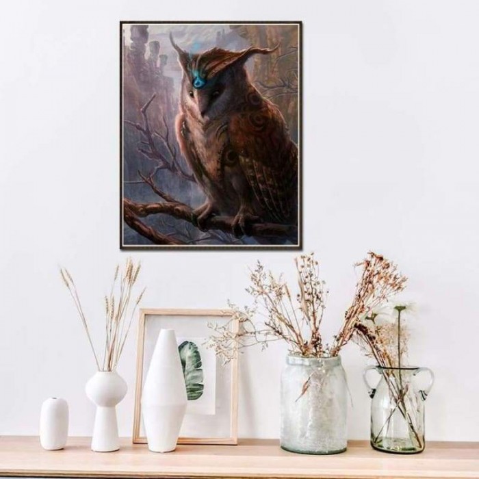 Volledige boor - 5D DIY Diamond Painting Kits Serious Owl on the Branches