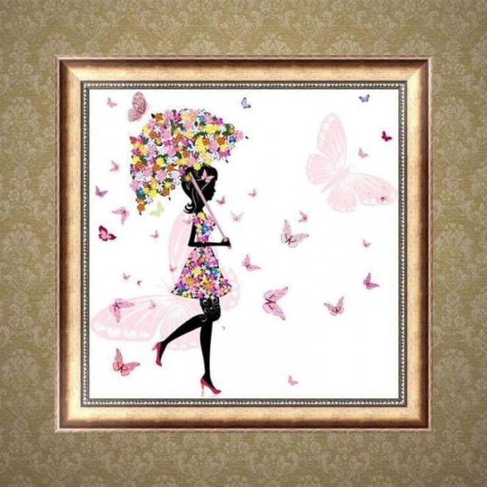 Volledige boor - 5D DIY Diamond Painting Kits Cartoon Girl Butterfly Umbrella