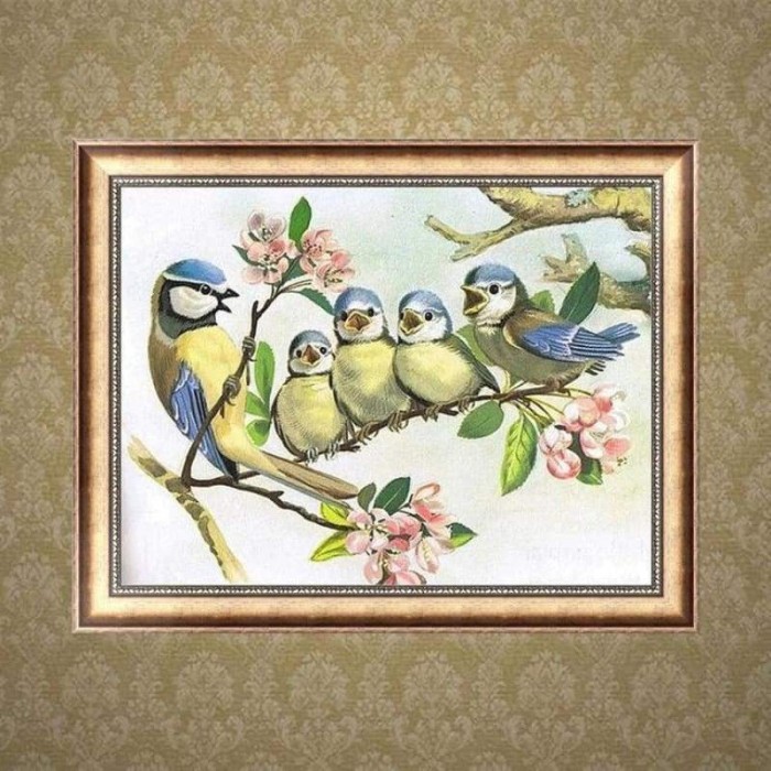 Volledige boor - 5D DIY Diamond Painting Kits Artistieke vogelfamilie op de takken
